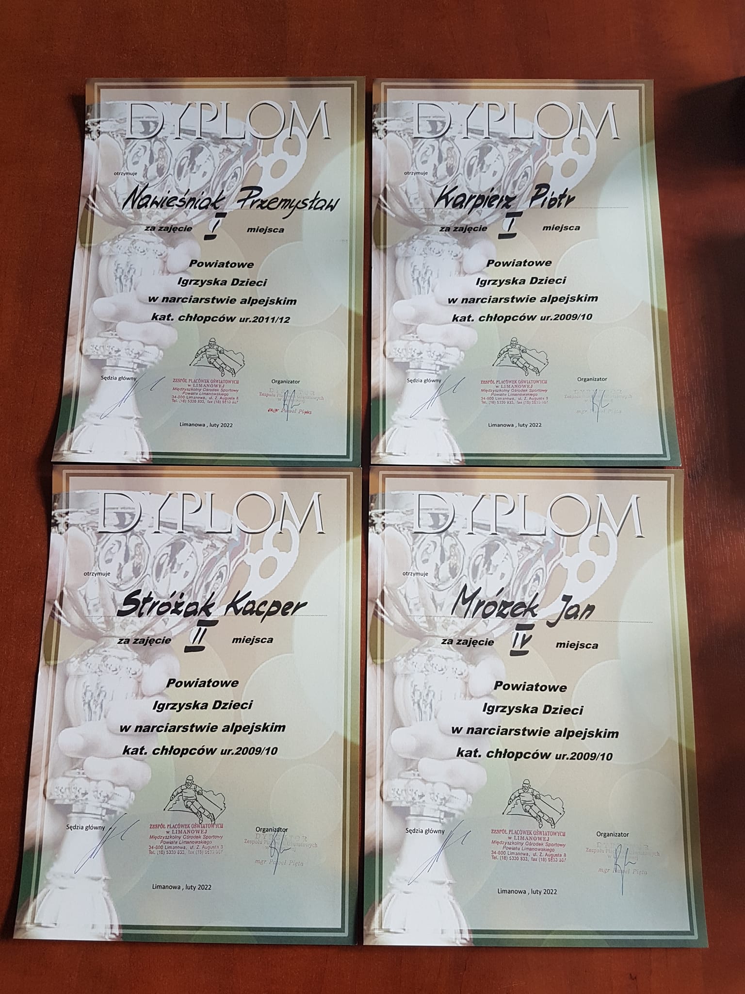 Na odbywających się dnia 23.02.2022r. Mistrzostwach Powiatu Limanowskiego w narciarstwie alpejskim nasza szkoła w kategorii chłopców zajęła pierwsze miejsce drużynowo.