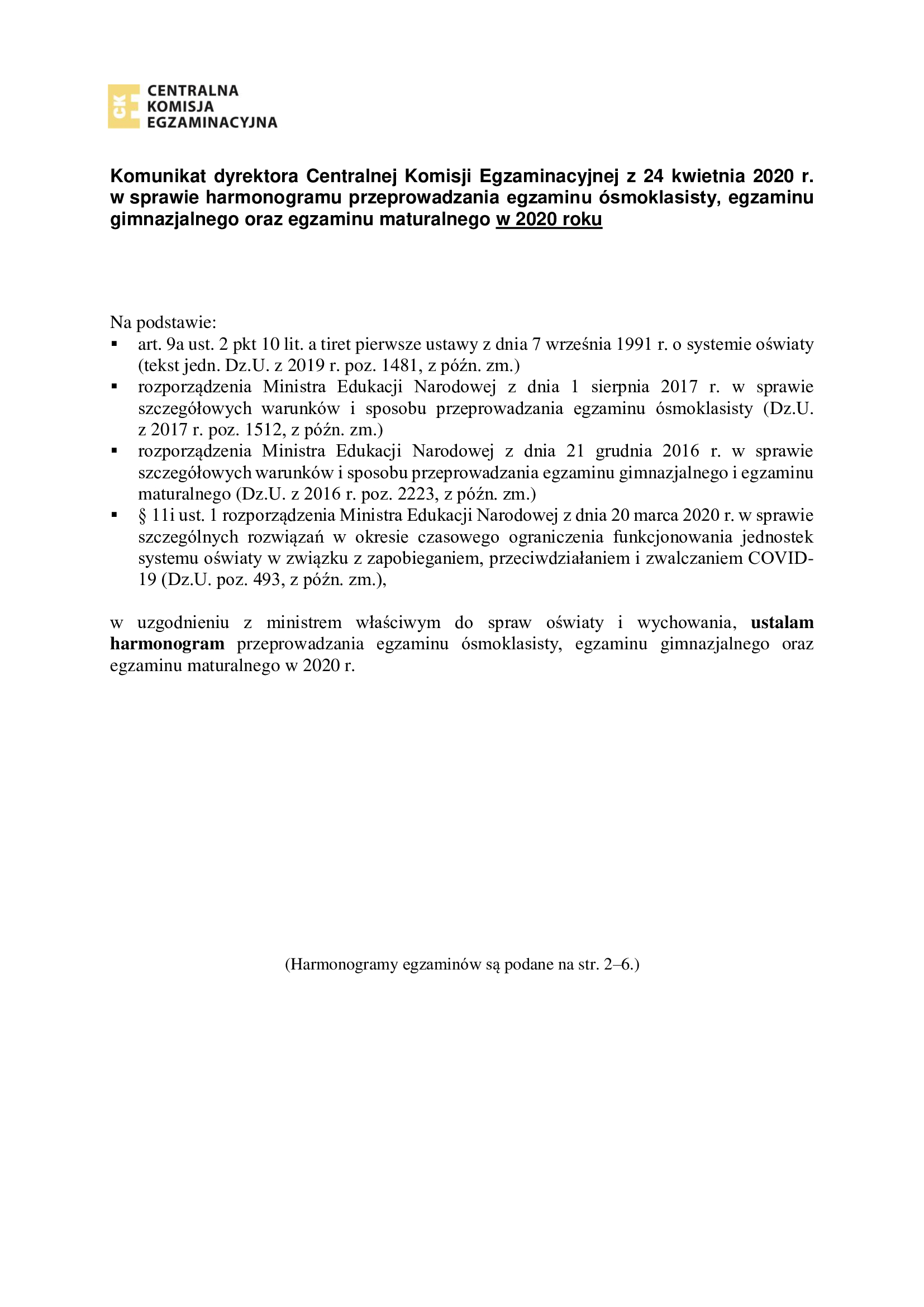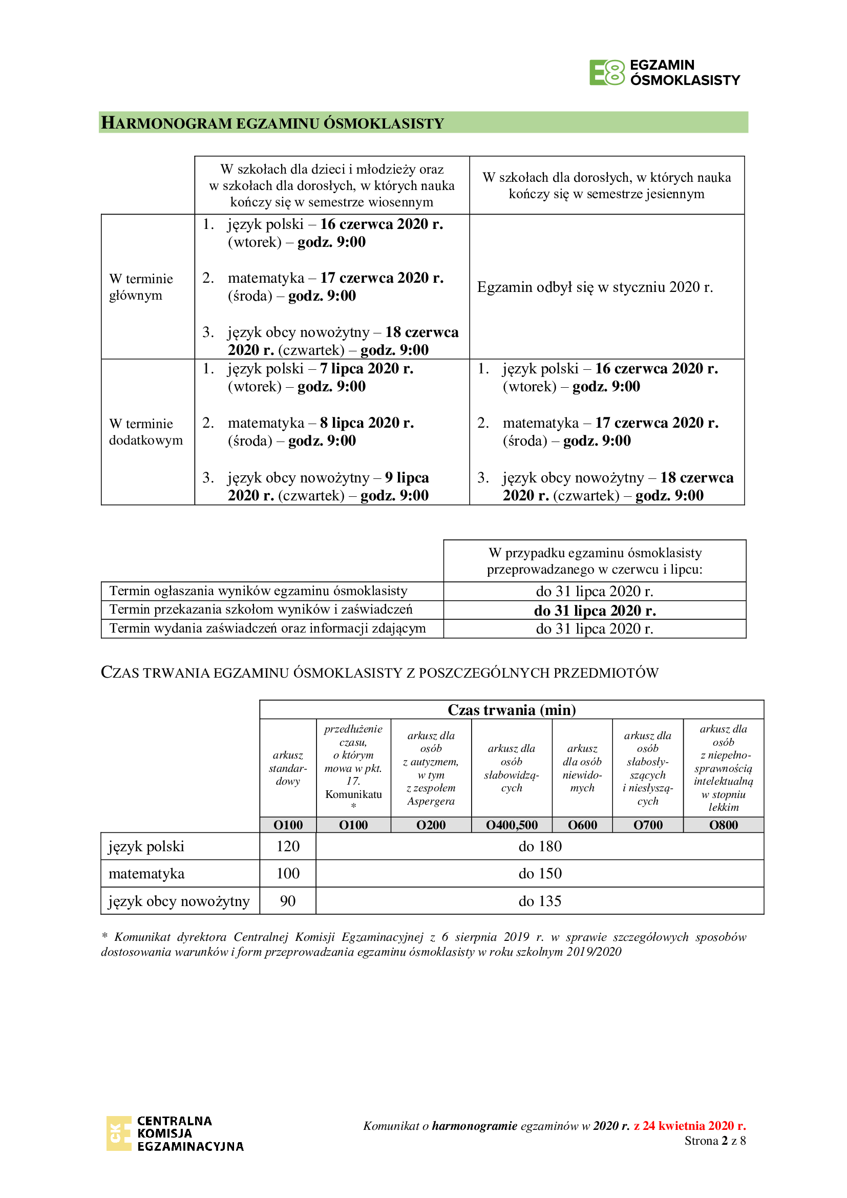 Komunikat dyrektora CKE z 24 kwietnia 2020 r. w sprawie egzaminu ósmoklasisty