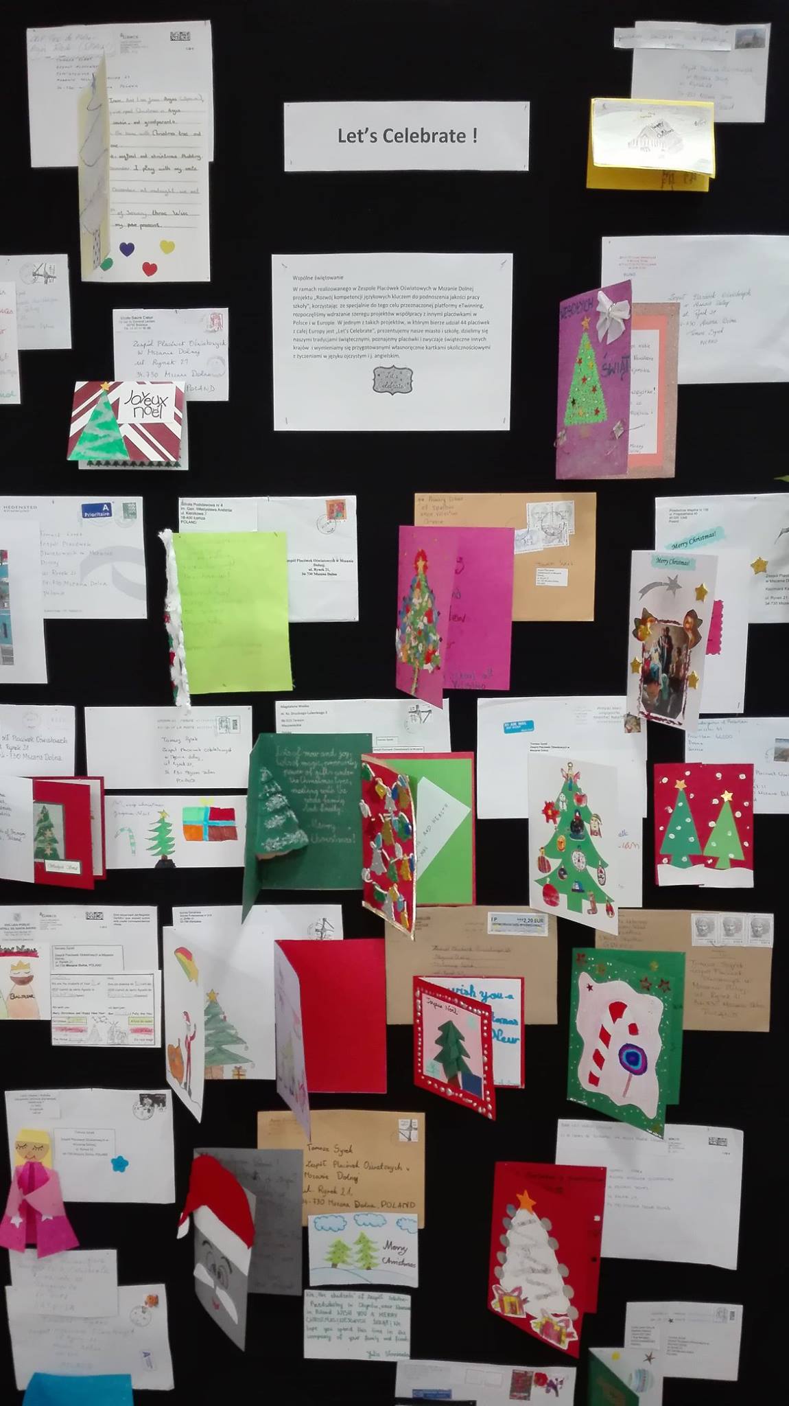 W ramach realizowanego w Zespole Placówek Oświatowych w Mszanie Dolnej projektu „Rozwój kompetencji językowych kluczem do podnoszenia jakości pracy szkoły”, korzystając ze specjalnie do tego celu przeznaczonej platformy eTwinning, rozpoczęliśmy wdrażanie szeregu projektów współpracy z innymi placówkami w Polsce i w Europie. W jednym z takich projektów, w którym bierze udział 44 placówek z całej Europy jest „Let’s Celebrate”, prezentujemy nasze miasto i szkołę, dzielimy się naszymi tradycjami świątecznymi, poznajemy placówki i zwyczaje świąteczne innych krajów i wymieniamy się przygotowanymi własnoręcznie kartkami okolicznościowymi z życzeniami w języku ojczystym i j. angielskim.