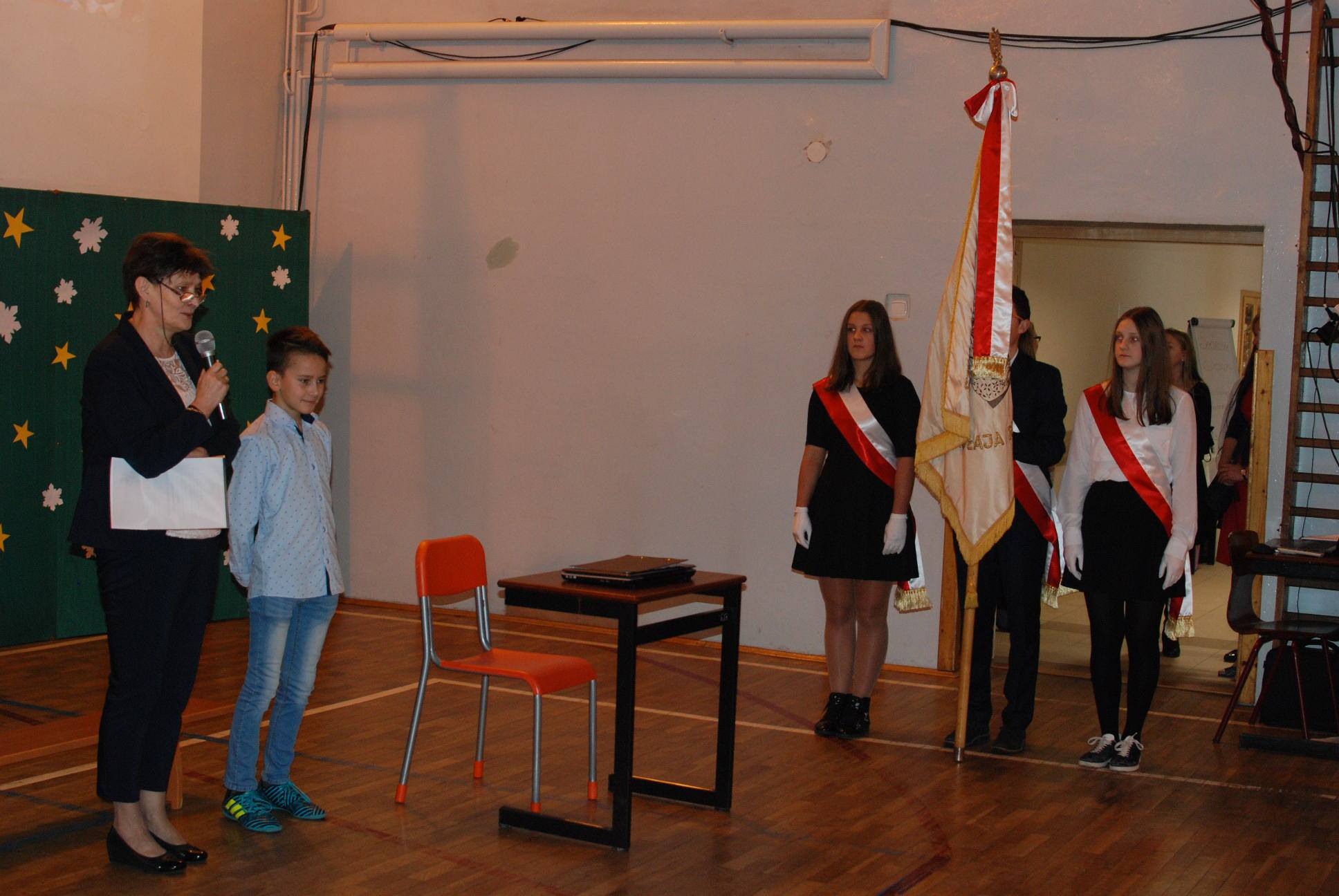 Wszyscy zgromadzeni mogli również sprawdzić się w umiejętnościach tanecznych. A uczestnicy finału konkursu poezji śpiewanej organizowanej corocznie w naszej szkole przenieśli nas w cudowny świat magii słowa . Z pewnością wszyscy obecni na sali byli wzruszeni wykonaniem piosenki Violetty Vilas przez zwyciężczynię Żaklinę Stróżak. Drugie miejsce zajęła uczennica klasy 4b, Nina Syrek , a trzecie duet Julia Rekucka i Artur Górni z klasy 5b. Talent naszych uczniów i ich zaangażowanie doceniło jury – nauczyciele: p. Izabela Karpierz, p. Agnieszka Stożek, p. Danuta Kujacz, p. Katarzyna Wasilewska. Na koniec pani dyrektor podziękowała wszystkim bardzo gorąco oraz zaprosiła uczniów na spotkanie z wychowawcami.