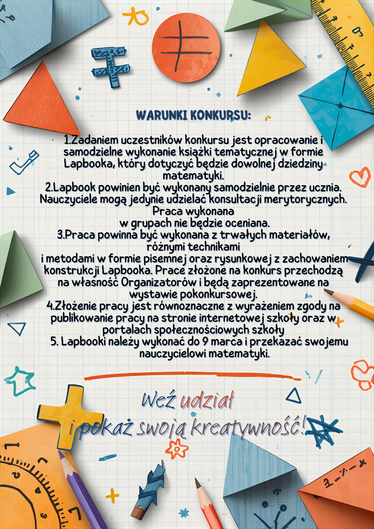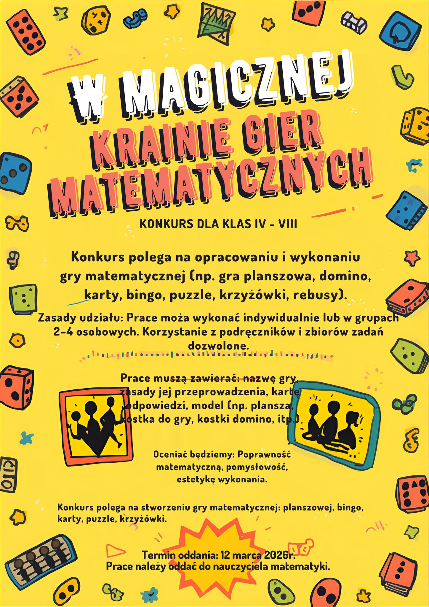 Tydzień matematyki w naszej szkole 16-20.03.2026 r. zachęcamy uczniów klas 4-8 do udziału w konkursach - szczegóły na plakatach:
